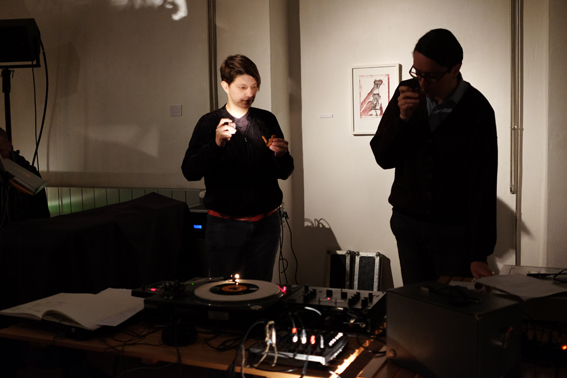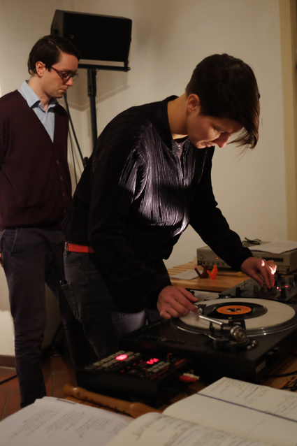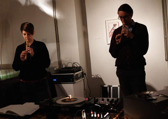 und abstrahieren auf ihre eigene Weise mit Geräuschen, Stimmen, Flöten, Vogelkäfig und Vogelfutter, sowie Schallplattenspieler.
