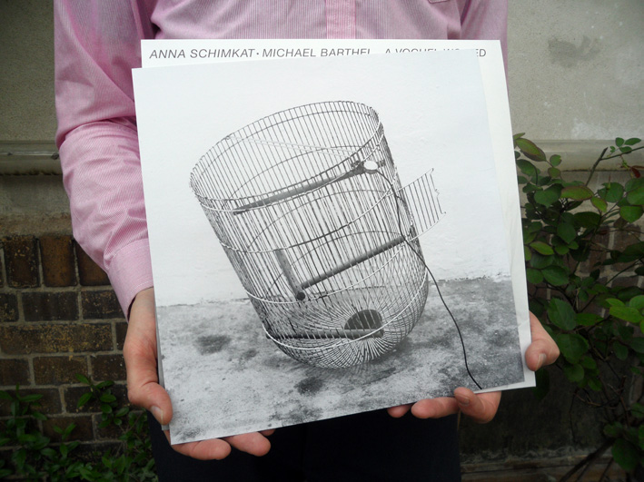 with noises, field recordings, text-recognition software, voices, recorders, birdcage