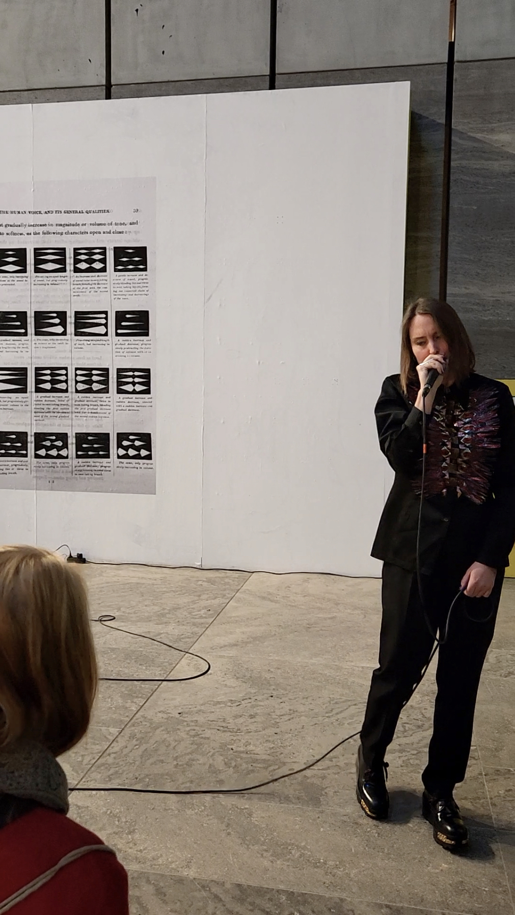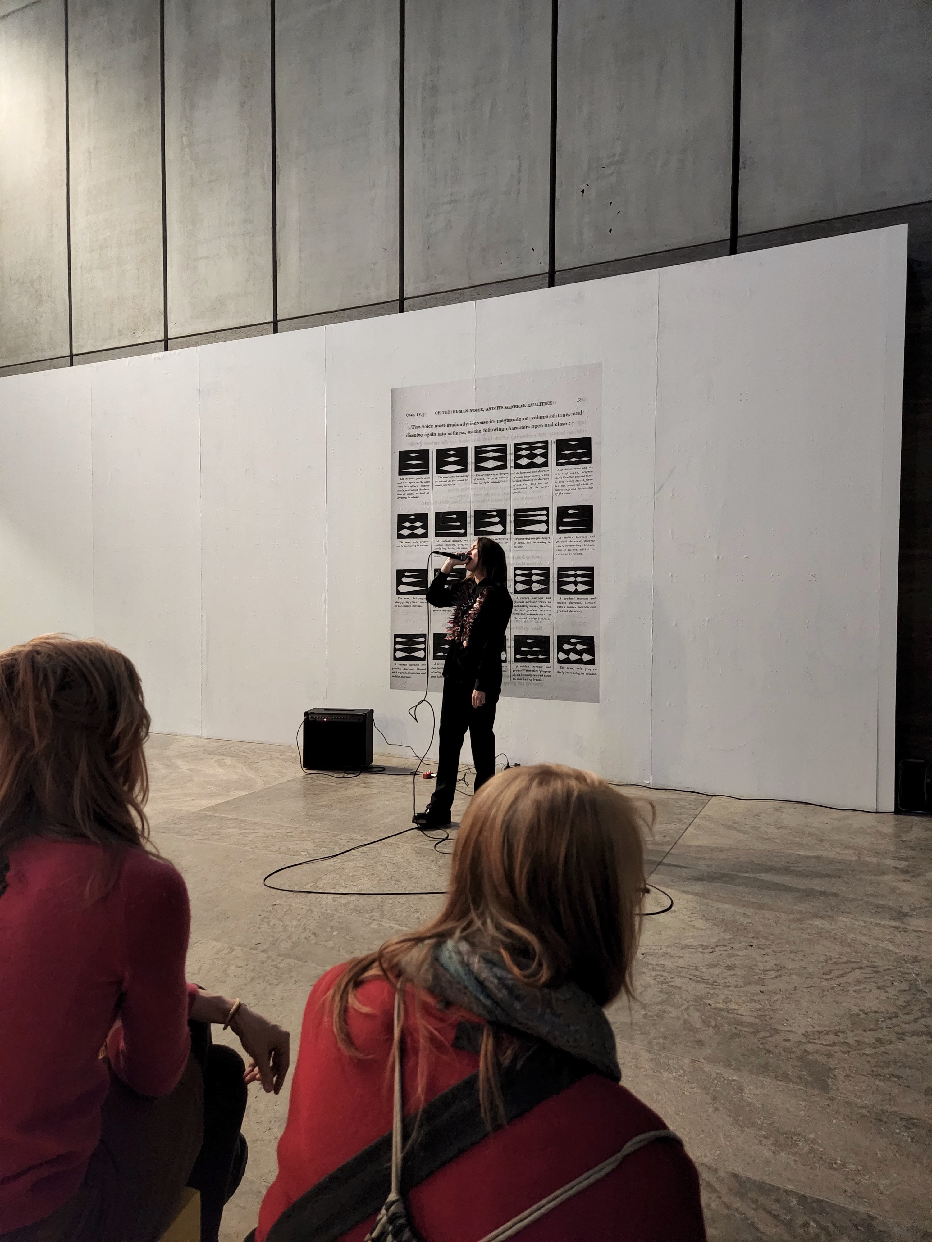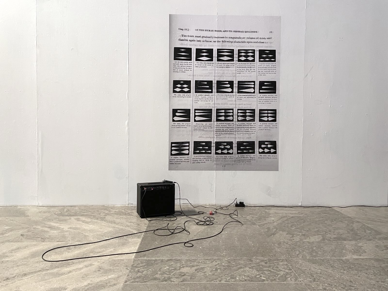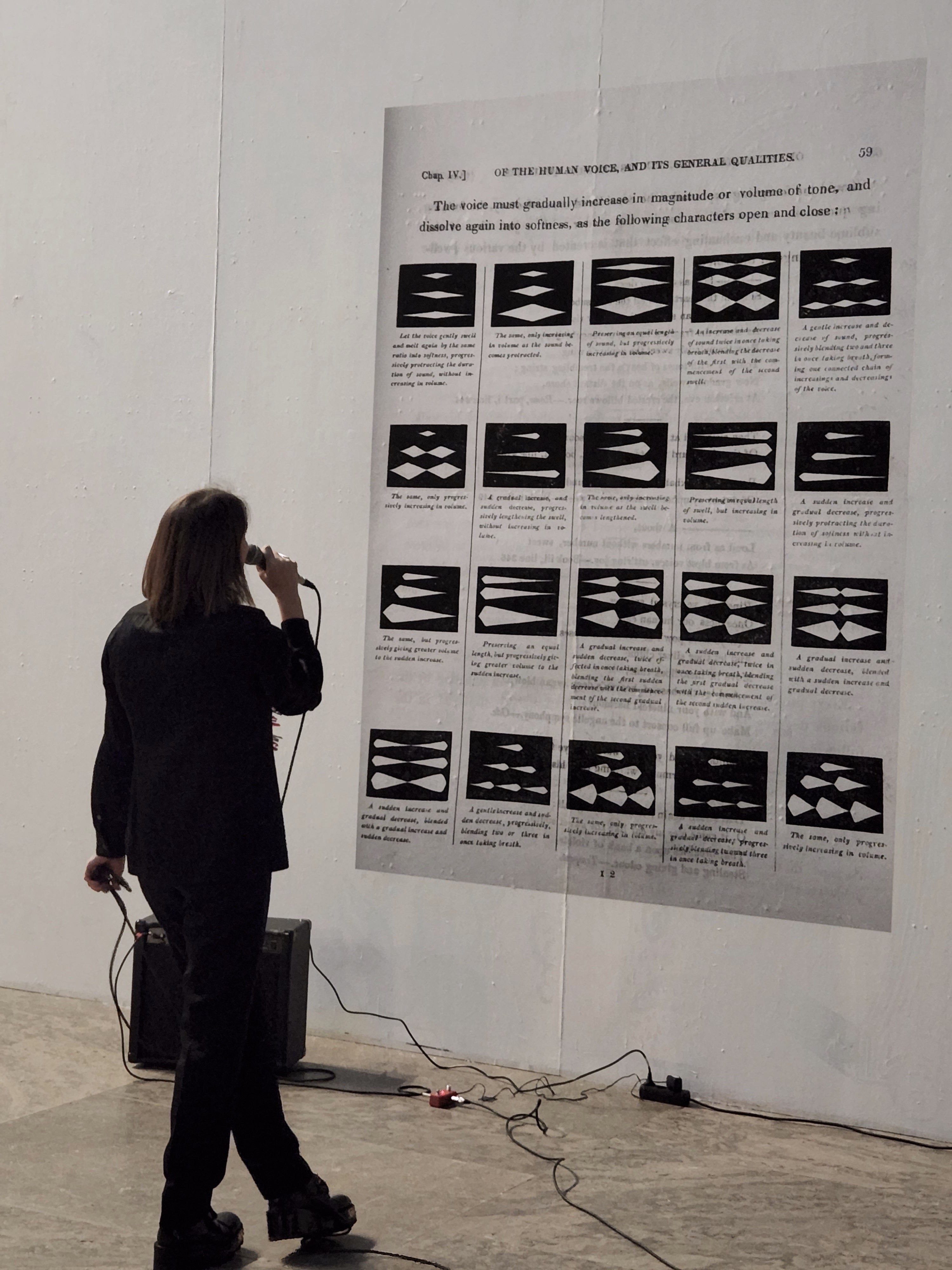 TWICE IN ONCE is a performance and installation inspired by a table visualising and explaining variations of the human voice, found in the 1823 book 'An Essay on the History and Theory of Music; and on the qualities, capabilities, and management of the human voice' by musicologist Isaac Nathan. In the performance an auditory landscape is created by layering, looping and reflecting on the power of song, transcendence and mythical sirens.